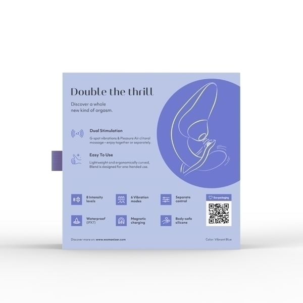 吸引と振動をダブルで楽しめるウーマナイザー!吸引強弱は8段階、振動パターンは6種類搭載。完全防水なのでバスルームでも使用可能。使用後は丸洗いでき、衛生的に使用できます。独立した2つのモーターにより、吸引と振動を同時に、または別々で楽しむことができます。吸引と振動、ダブルの刺激によるオーガズムを「ブレンドオーガズム」と言いますが、このウーマナイザーブレンドはまさにブレンドオーガズム初心者の方にぴったりなアイテムです!●カラー:ヴァイブラントブルー※こちらの商品は受注発注商品の為、ご注文から発送までに3、4営業日掛かる場合が御座います。
