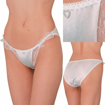 ボディーラインを強調するローライズデザインが、女性本来の魅力を最大限に引き立たせてくれます。サイドからデリケートゾーンにかけてあしらわれた、エレガントなレース使いが見事!こちらは清楚なホワイトカラー。