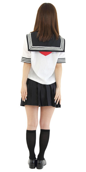 赤いスカーフがポイント!人気の定番セーラー服コスプレ(LL)。涼しげな夏服仕様の半袖タイプ!セーラー襟や袖のオーソドックスな3本ラインでリアル感も演出!ミニ丈のプリーツスカートがちょっぴりセクシーなスクール系コスチュームです。