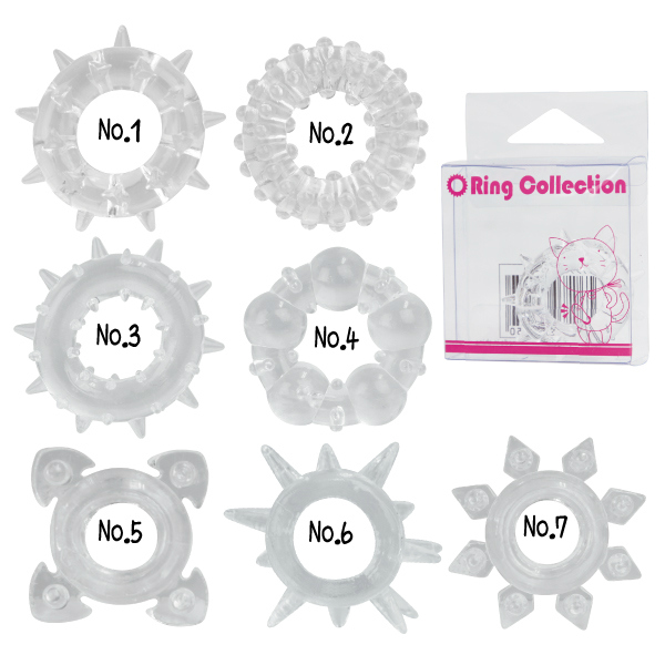 男性補助に便利なデコボコ形状のコックリング「NEWリングコレクション4」。初心者の方でも簡単装着!柔軟性を重視した、使い心地の良いソフト素材は抜群のフィット感!「少しキツイかな?」と思うくらいの力が加わり、早漏防止やパワーアップ効果が期待できます。単体でも、複数のコックリングを取り付けても使用できて、色々と楽しめる男性用アダルトグッズです。