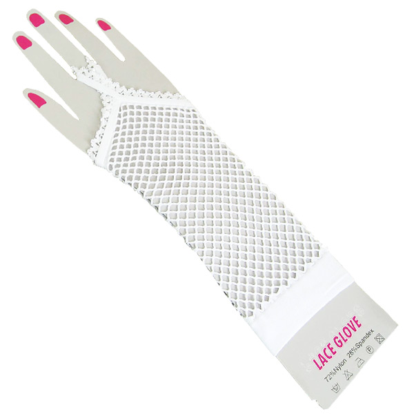 おしゃれな手元を演出する、フィンガーレスタイプのメッシュグローブ(ホワイト)。中指をリングにかける指出しデザインの手袋なら、指先が隠れないので自慢のネイルアートも美しく見せられます。様々なコスチュームとも相性抜群です!