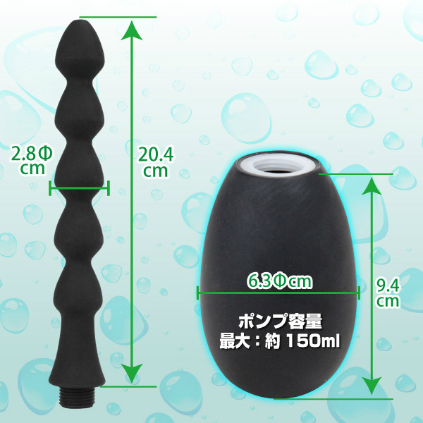 アナルへの注入・洗浄・快感の3つを兼ね備えた、ポンプ付きアナルスティック「エイナスウォッシャー TYPE D」。素材は肌触りのいいシリコンを採用!縦に並んだ大きさの等しい5連球が、内部に刺激を与えます。また、本体の底部に付いたポンプには、ローションや洗浄のための液体を150ml入れることができ、使い勝手もバッチリ!中に入れた液体は先端のノズルから出てきます。挿入から快感、そして洗浄までコレひとつで全部できちゃうアナル専用グッズです。※専用の取替ヘッド(b19707)(b19708)(b19709)(b19710)(b20854)も販売中です。