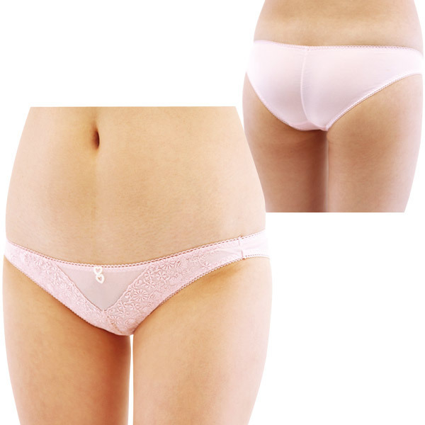 <EROX>ハートのチャームがとってもキュート!プリッとしたお尻が強調されるフルバックショーツ。恋する乙女をイメージしてデザインしたかのように、純粋さ、清潔さが溢れるベイビーピンク仕上げ。V字ゾーンに施した花柄レースが女性らしさをUP!幾つになっても身につけたいセクシーランジェリーです。