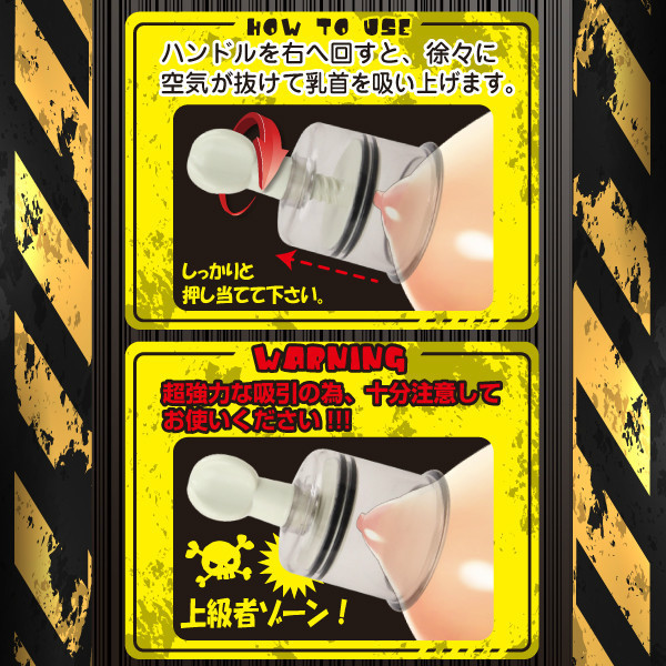 刺激が足りないあなたに!吸引タイプの乳首責めグッズ「ニップルデンジャー」。本体を乳首に押し付けてから、ハンドルをクルクルとまわすだけの簡単操作!強力吸引で乳首をしっかり吸い上げます。性感帯の開発はもちろん、陥没乳首の勃起用にも最適。本体は1個入りですので、両乳首を同時に刺激したい場合は2つお買い求め下さい。
