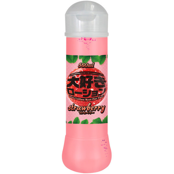 ひとつ持っていれば全種類を集めたくなっちゃう、カラフルでいい香りのラブローション!その名も「大好きローション」。こちらの商品は、ストロベリーの香りがする内容量360mlのボトルローションです。いざという時にパッと開けられるワンタッチキャップを採用!5種類の色と香りから選べる、女性ウケのいい可愛いアイテムです。