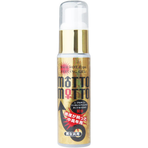 男女共用ジェル「モットモット 50g」。L-アルギニン、トッカントアリエキス、オットセイエキスなどの元気成分配合!無色透明でパラベンフリーです。