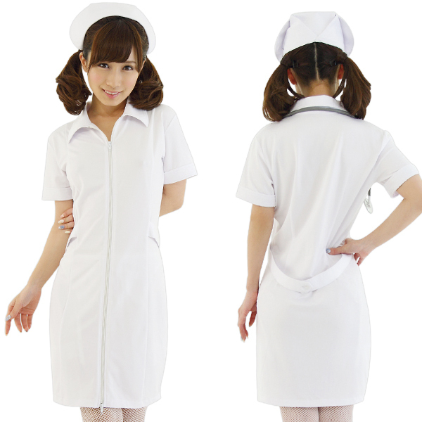 憧れの白衣の天使に変身!清楚な雰囲気のナース服コスチューム。●男女ともに憧れる定番衣装●清潔感たっぷりの純白タイプ●しっかり襟付きの半袖ワンピース●フロントジッパーで着脱カンタン●本格的なナースキャップ付き。さらにナースキャップを固定させるのに必要なヘアピンも2本セット!届いたその日からすぐにナースに変身できちゃいます。ジップの開閉具合でキッチリにもセクシーにも演出できる定番コスチュームです。※聴診器、ストッキング、サンダルは付属しません。