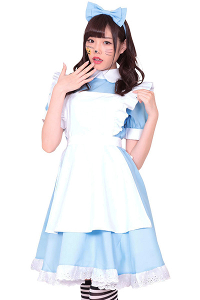 リボンカチューシャが付属していて大変お得な激安リボン衣装です。おとぎの国からご挨拶♪メルヘン風にもアイドル風にもなれる清楚メイド。ハロウィンのコスプレにはもちろんのこと、年末年始のイベントやクリスマス衣装・クリスマスパーティーにも良いかも♪リボンのカチューシャだけを使って他のコスプレ衣装と合わせての使用もおすすめです。●パステルブルー×ホワイトカラー●丸襟&パフ袖&裾レースワンピ●フリルいっぱいの白いエプロン●大きなリボンカチューシャ付き。アリスみたいなメルヘンっぽさがとってもキュートなコスチューム!ふんわりスウィートな雰囲気が乙女心をキュンキュンさせちゃうメイド衣装です。※靴下は付属しません。