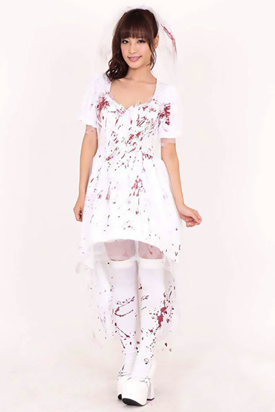 ハロウィンパーティーの主役間違いなし!鮮血が映える純白のウエディングドレス。●ゾンビ風の血のり加工済み●燕尾ラインの花嫁ドレス●シンプルなベールもセット。ホラーなダメージ加工が超リアル!血に染まるウエディングドレスで、ハロウィンナイトをたっぷり楽しめちゃうゾンビの花嫁コスチュームです。※ストッキングは付属しません※こちらの商品は受注発注商品の為、ご注文から発送まで2〜3営業日掛かる場合が御座います。