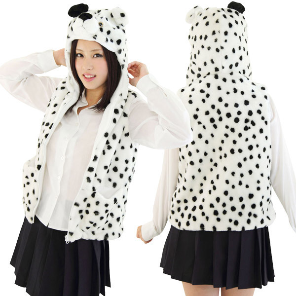 白×ランダムな黒点がCOOL!チーターの毛皮プリントがワイルドな着ぐるみベスト。●ふわっと軽くてあたたかいフェイクファー仕立て●フードは左右の耳の色が違うチーターフェイス●ポケット付き・前面フルジッパー。カジュアルな服装に似合うアニマル系のコスチューム。お茶目な姿が超ウケる!ハロウィンや仮装パーティでもぜひ着てくださいね。※親子でお揃いコスプレができる子供用サイズ(b23315)も御座います※こちらの商品は受注発注商品の為、ご注文から発送まで2〜3営業日掛かる場合が御座います。
