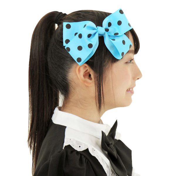 鮮やかなブルーリボンに黒いドットをプリントしたコスプレ向けヘアアクセサリー単品。●大きめリボン&サイコロっぽい黒ドット●装着簡単・バネ付きヘアピンタイプ●サイドからスッと差し込んで挟むだけ。襟元やスカートの裾など、ヘアスタイルに関係なくどこへでも使えます。アイデア次第、あったらいいな!と思った場所に飾ってみてください。※こちらの商品は受注発注商品の為、ご注文から発送まで2〜3営業日掛かる場合が御座います。