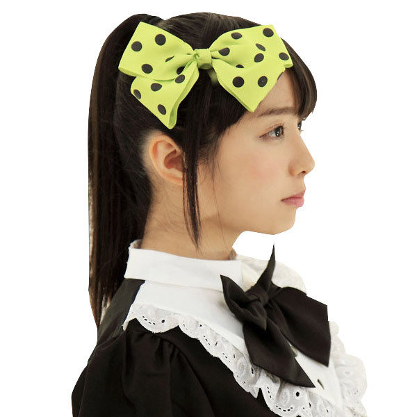 オシャレのワンポイントに♪レトロポップなグリーンドットのヘアリボン。●大きめサイズのリボン●どこかレトロなグリーンのドット柄●簡単クリップ留め仕様。ポップカラーをアクセントにして、まわりと差をつけるおしゃれコーデにチャレンジ!普段使いにもアイドルコスプレのお供としても重宝するヘアアクセサリーです。※こちらの商品は受注発注商品の為、ご注文から発送まで2〜3営業日掛かる場合が御座います。