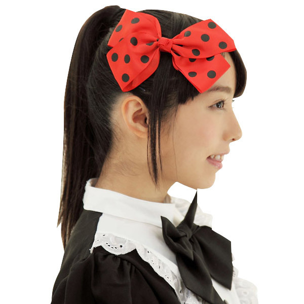 大きなリボンがインパクト大!コスプレはもちろん、普段のファッションアイテムとしても使えちゃうヘアクリップ。●キュートな赤×黒のドット柄●装着簡単なクリップタイプ。コスプレの中でもメイド服との相性抜群!可憐さをプラスしたい時に持っていると便利なアイテムです。※こちらの商品は受注発注商品の為、ご注文から発送まで2〜3営業日掛かる場合が御座います。