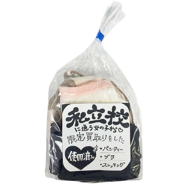 みんなに内緒で秘密のバイト?こっそり買い取った使用済みランジェリー。●私立学校に通う生徒から買い取り●脱いだばかり!リアル感たっぷり●ブラ&ショーツにストッキング付●各1枚ずつの豪華な下着3点セット●生々しさを煽る透明袋入り。匂いやシミがついているかも!思わず持ち主を想像してしまうフェティッシュな下着セット。エアーダッチやラブドール用のアイテムとしてもおすすめです。※アソートとなりますので、色・柄・種類のご指定はできません※USED加工を施した新品未使用品です