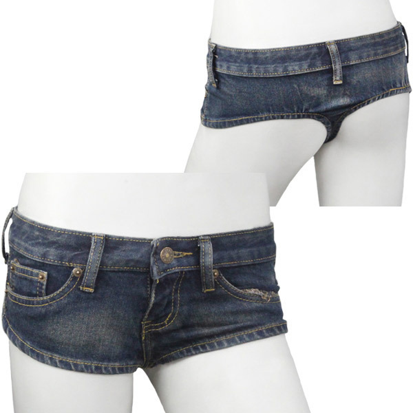 まるでTバックショーツ?前も後ろも露わになるセクシーなデニムのホットパンツ。●ヴィンテージ調のデニムカラー●超極浅仕上げの股上●Tバック風のセクシーデザイン。もうこれ以上は限界!というぐらいギリギリまで攻めた、狙い所満載なデニムのショートパンツです。