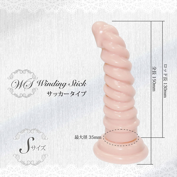大きくうねりを描いた螺旋形状のユニークなディルド。●「ワインディングスティック」シリーズ・サッカーS●全長:約15.0cm/挿入部:約13.0×3.5cm●クネクネ螺旋を描いた刺激的なボディ●細めの先端・スムーズな挿入感●初心者でも気軽に挑戦できます●床や壁に引っ付く吸盤付き●安心の日本製。膣壁を刺激しながら子宮へ到達!今まで感じたことのない絶頂感を体験できるディルドです。