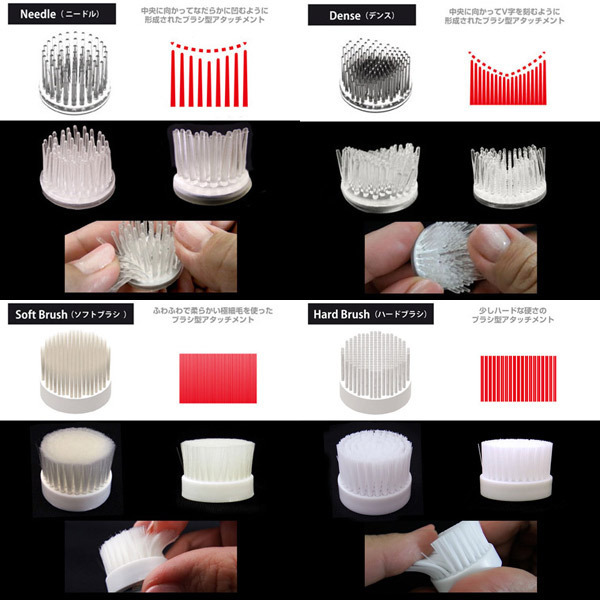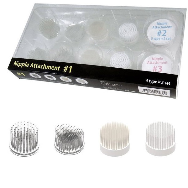 乳首をさらにイジめ倒す!ニップルドーム専用の多種多様なアタッチメントセット。●別売りの乳首吸引ローター専用●両乳首で楽しめる全4種×各2個●ニードル:丸く窪ませたすり鉢状●デンス:中央に向けV字に凹む形●ソフト:筆先のようにソフト極細●ハード:やや硬く刺激度も高め●ニードル&デンスはシリコン製●ソフト&ハードはブラシ形状。強力な吸引力とパワフルなバイブレーションでマニアに人気!ホワイト(b23826)・ブラック(b23838)の二色が好評なニップルグッズをディープに楽しめるアタッチメント。両乳首で同じ刺激を楽しむもよし、敢えて別々にして3P感覚を楽しんでもよしです。