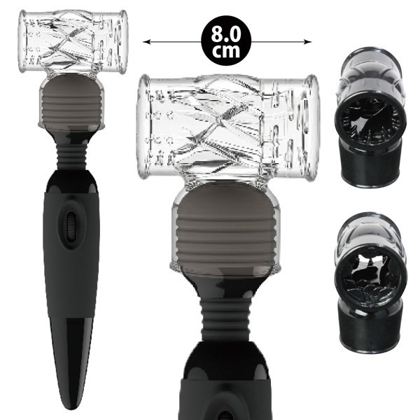 電マが電動ホールに早変わり♪エラストマー素材のオナホール型アタッチメント。●電マ専用アタッチメント●柔軟素材のエラストマー製●内部丸見えのクリアカラー●両端の構造が異なる貫通ホール型●ウロコのような横ヒダ側●360度びっしり埋め尽くすイボ側●両側どちらからでも挿入可能。ヒダとイボ、どちらがお好み?左右で異なる構造を味わいながら、電マの強力振動もしっかり堪能できるオナホ型アタッチメント。パワーワンド(b24919)の他にヘッド直径4.5〜5.2cmの電マ、フェアリーミニ(k00003)やフェアリーターボ(k00164)等にも対応しています。