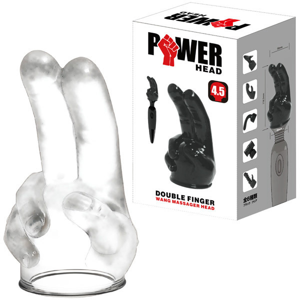 本物の手のようなリアル形状!手マンされている気分を堪能できるダブルフィンガータイプの電マ専用アタッチメント。●ダブルフィンガー(クリア)ver●柔軟かつ耐久性のあるエラストマー素材を使用●ヘッド径4.5〜5.2cmの電マに使用OK。パワフルな振動がアタッチメントを通じて高刺激を与える!刺激に慣れた方でも大満足できる電マ用アタッチメントです。