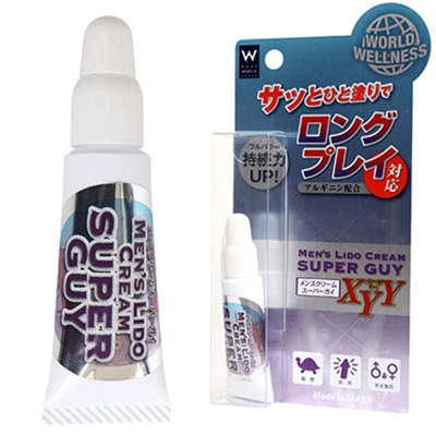 「メンズクリームスーパーガイ」で持続する男に!ロングプレイを楽しみたい男性に、男性用クリームのご紹介です。L-アルギニン配合。