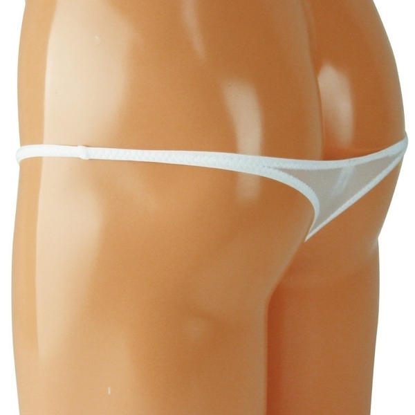 ミニマムなスタイルがお好みの方に!軽やかな透け素材の男性用シースルーショーツ。●極薄のホワイトシースルー●良く伸びるストレッチ素材●お尻丸見えな超ローライズ●サイド脇細のTバック仕様●男性用Sサイズ・日本製。スッキリとしたシンプルフォルムでもこだわりを♪透け感がセクシーなメンズアンダーウェア。上下左右に伸縮する2wayストレッチ素材でしっかりと身体にフィット!フロントは若干膨らみを持たせた縫製なので、窮屈過ぎないナチュラルなタイトさです。