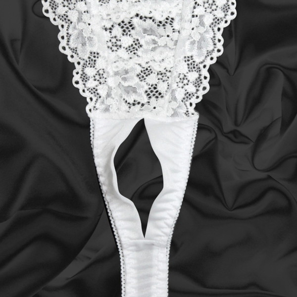 > トリコット生地フラワーレース脇紐オープンTバック ホワイト