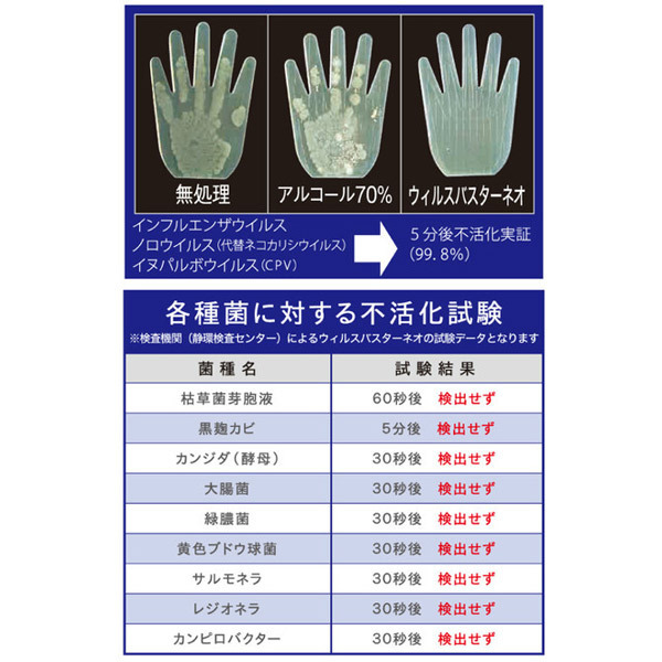医療現場でも使用される安心の「除菌力」がアダルト業界に降臨!瞬間強力除菌&消臭ができる衛生水「ウイルスバスターNEO(1L)」業務用パウチ入り。●今話題の次亜塩素水で除菌●塩素もアルコールも不使用●添加物由来成分のみで精製●安心して使用可能な安全性●無味無臭で優しい弱酸性●サッと一吹きで除菌&消臭●たっぷり使えて経済的な1L●キャップ付きパウチ入り。レジャーホテルや風俗店の衛生管理にも最適!強力除菌と瞬間消臭を兼ね備えた安全安心の次世代環境衛生水。驚くほどの効果を発揮しながら、肌に触れるものでも安心して使える人に優しい仕様。バイブやオナホールの使用前・使用後の除菌から、ウィルス対策としての空間除菌や消臭、さらにはうがい液としても使用可能!あらゆるシーンで活躍するオールマイティーな衛生グッズです。
