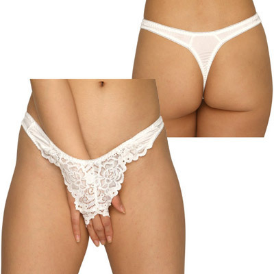 > トリコット&レース生地オープンクロッチTバック ホワイト