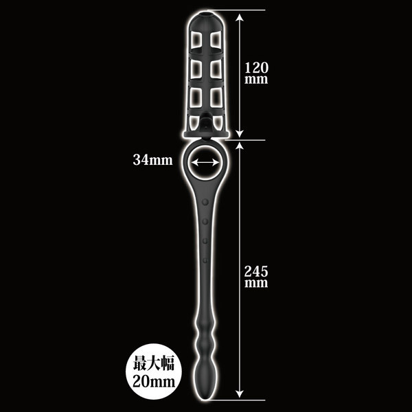 仕様:パッケージ:26.0×15.0×5.0cm 本体:サック全長12.0cm リング内径3.4cm アナルプラグ全長24.5cm