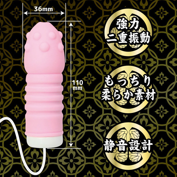 世の棒、見忘れたか!太く逞しい棒と先端イボ&凸凹形状が暴れまわるショートサイズのバイブレーター「暴れん棒将軍」。本体はもっちりと柔らかな素材で最高の挿入感!内蔵モーターの両サイドにあるおもりが共鳴して芯まで響くパワフルな二重振動の快感を生み出します。コード付きのコントローラーは微調整可能なスライド式!扱いやすい小ぶりなサイズで挿入しても当てても楽しめるバイブレーターです。安心の日本製、単三電池×2本付属。