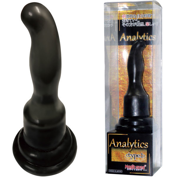 緩やかカーブで目覚める快感!吸盤付きアナルディルド「Analytics(アナリティクス) type1」。●柔軟なエラストマ素材の弾力ボディ●全長14cmで初心者の挿入も安心●ポイントを狙う緩やかカーブ形状●先端20mm、中腹部の膨らみは25mm●安定感のある底部吸盤・日本製。入門者のアナル開発に最適!丸みがあるので初心者でもスルリと挿入しやすい安心フォルムのアナルプラグ。手放しプレイができる吸盤付き!壁や床に固定すればプレイの幅も広がります。