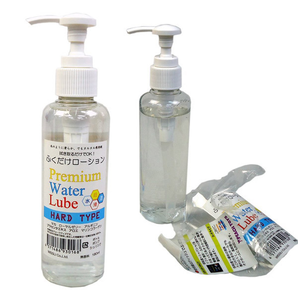 水のように滑らかでもヌルヌル感持続!拭き取るだけの「ふくだけローション Premium Water Lube」。●垂れにくいハードタイプ・180ml●適量を出しやすいプッシュボトル●愛液風のウォーターベース●グッズと相性抜群の硬めテクスチャ●使用後はティッシュで拭くだけ●無香料で自然な潤いの日本製。液垂れしにくいウォーターベースのハードローション。サッと拭くだけでベタつきが残らず後処理も簡単!グッズとの併用や指オナにもぴったりです。【配合成分】マカ・ローヤルゼリー・アルギニン・マリンコラーゲン・プラセンタエキス・アロエエキス。