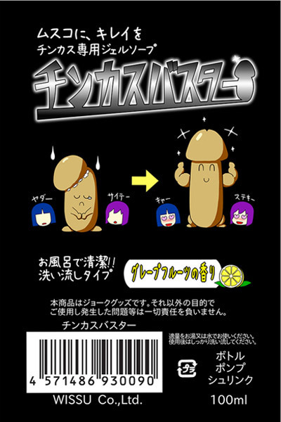 お風呂でいつでも清潔に!チンコ専用の液体ジェルソープ「チンカスバスター 100ml(ジェル)」。●コンパクトなプッシュ式ボトル●しっかりと泡立つジェルタイプ●爽やかなグレープフルーツの香り。ムスコにキレイを♪いつの間にか溜まってしまうチンカスを綺麗さっぱり洗い流してくれるペニス専用の液体ソープ。グレープフルーツの香り付きで気になるニオイもケアしてくれます。