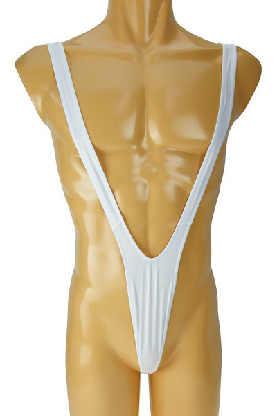 男のおしゃれは下着から!大きくV字に開いたスリングショットデザインのメンズショーツ(ホワイト)。縦のラインを強調するマンキニ風のサスペンダーデザイン!男性の魅力を最大限に引き出すワイルドでセクシーなメンズランジェリー。肌に馴染むストレッチ生地で着心地も良好!背面は食い込み度の高いTバックで後姿に一段と潔いセクシーさを感じさせてくれます。