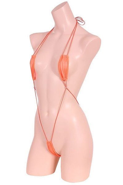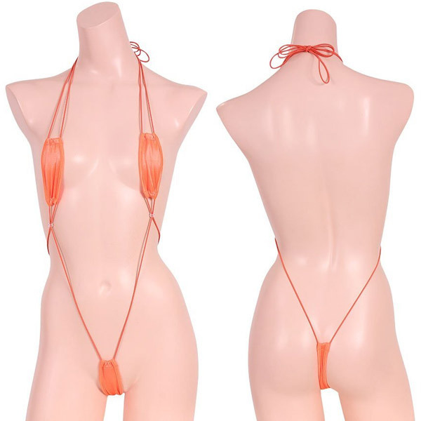 ギリギリ隠れる極小の縦長生地がセクシー!光沢感のあるサラっとしたストレッチ生地のサスペンダーテディ「極小光沢ストレッチプレイスーツ オレンジ」。大胆デザインのプレイスーツ!ホルターネックは紐で調節可能。世界的なUSメーカーのセクシーランジェリーブランド『Shirley OF HOLLYWOOD(シャーリーオブハリウッド)』とのコラボ下着『Cherry Love』シリーズです。※モデル153cm・B83・W56・80cm・Fカップ