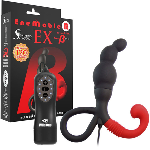 あの前立腺開発グッズ「エネマブル」がグレードアップ♪脳天まで突きぬける120種の快感振動を深い部分で味わえる電動エネマグラ「ENEMABLE R EX Type-β」。サラッとした肌触りで高級感あふれるマットコート仕様の前立腺刺激グッズが全120種類の振動を可能にした新モデルのIC機能付きコントローラーで登場!微弱から激震への12段階スピードに加え、多彩な10種類の振動パターン変化機能を搭載しています。会陰部を刺激するフックには3段階調整可能な可動式アームを採用し、確実に会陰部を刺激します。超低速からターボモードまで飽きのこない多彩な振動を搭載した深化系アナルグッズ!『ベータタイプ』は中腹の大きなコブで拡張される快感の誘導を促します。単四電池×2本付属。