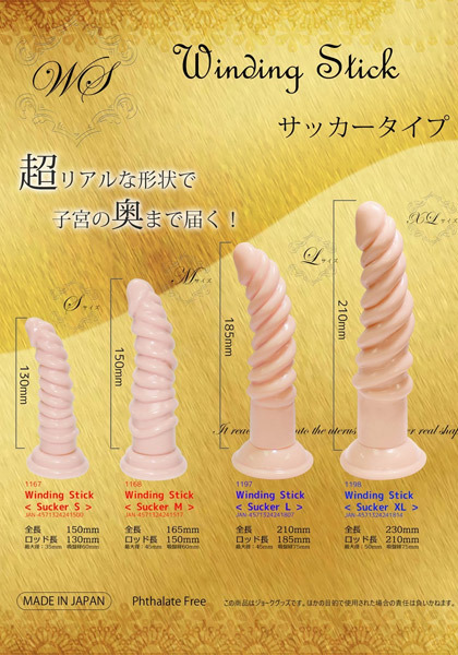 快感の渦に巻き込む肉感フォルム!凸凹ねじれ形状の吸盤付きディルド「ワインディングスティック サッカーL」。純日本製の素材のみを使用した艶めかしく刺激的な見た目の快感ディルド。壁でも床でもピタッと吸着してフリーハンドで楽しめる吸盤タイプ!細めの亀頭がスムーズな挿入を促します。渦を巻いた刺激的なボディが膣内をかき乱しながら子宮まで快感を届けます。