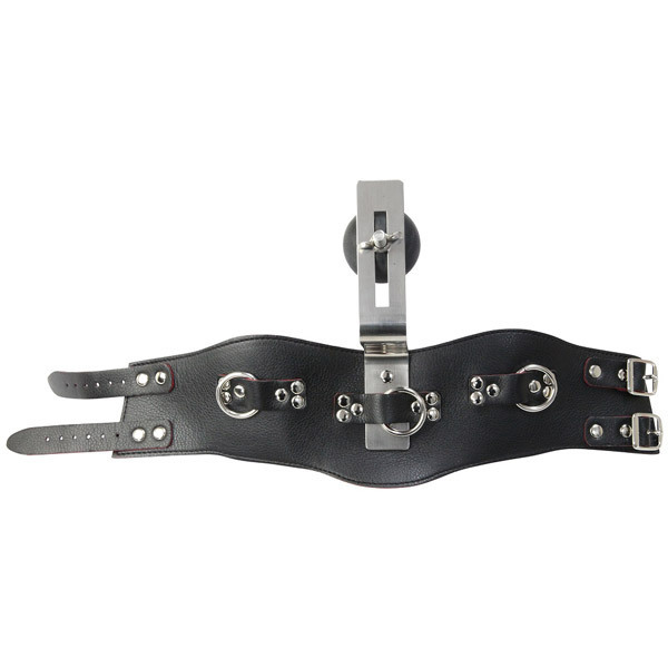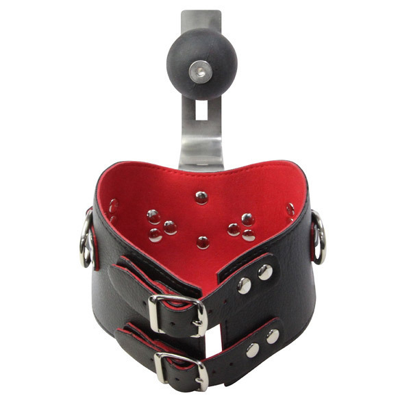 SMプレイの深淵へと導く!赤と黒のフェイクレザーが妖艶な『ABYSS』シリーズのSMグッズ「Abyss(アビス) 首輪固定式ギャグボール」。首にガッチリ固定された大型のボールギャグで口の自由を奪い、流れ出るよだれが羞恥心を更に煽ります。約4.5cmのボールは取り外して位置の調整が可能(首輪と金具の取り外しは出来ません)。材質はフェイクレザー・鉄・ゴムボール、首周りは約37〜42cmまでサイズ調節可能です。※モデル着用のニップルタッセル、ショーツ、ストッキング等は付属しておりません。