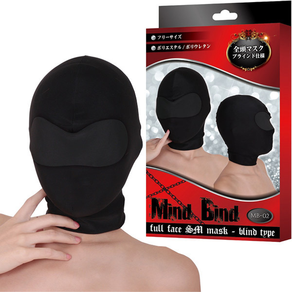 いつものプレイが過激に変貌!視界を完全に奪うブラインド仕様のSM全頭マスク「マインドバインド 全頭マスク ブラインド仕様 MB-02」。目の部分がアイマスクのような二重生地になっているので、視界を完全にシャットアウトできます。ポリエステル、ポリウレタンを使用した薄手のストレッチ素材が伸縮して顔全体にフィットする男女兼用のフリーサイズです。