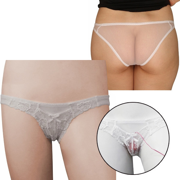 ホワイトシースルーとフラワーレースで視線をキャッチ!フロントポケット付きのレディースショーツ。透け感のあるフローラルレースのフロントにお手持ちのローターを収納できるポケット付きランジェリー!後姿はセクシーなホワイトシースルーのフルバックタイプです。※ローターは付属しておりません。