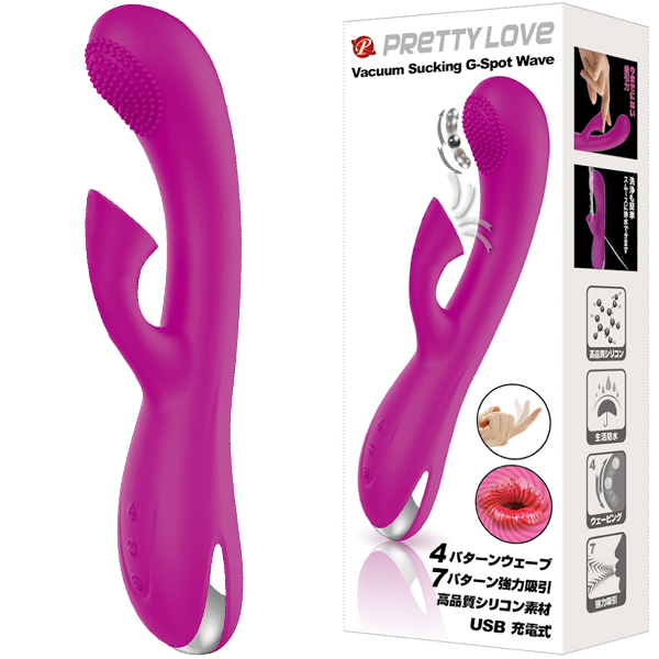 Gスポ&クリを2つの快感が襲う!異なる刺激で責め立てるバイブレーター♪大きさは21cmと平均よりは少し大きめのサイズで、挿入部は入れ応えのある3.6cm幅。少し出っ張った先には細かなイボが設置され、内部には4パターンの上下ウェーブ動作を搭載したボールが内蔵!指で掻き出すような気持ちよさを感じられます♪また、人の口で吸われるかのようなソフトな吸い口で、クリを強力吸引して刺激しながらGスポとクリの同時責め!その気持ちよさは、いつもの刺激に飽きた方に大変オススメです♪本体は高品質なシリコンを採用で、多少の水濡れにも対応できる生活防水も搭載。吸い口の洗浄も水で流すだけと簡単で、スムーズに排水もしてくれるから安心ですね♪電池不要なUSB充電式で180分充電すれば、およそ70分の連続稼動が可能!使用時にはワイヤレスでお使いいただけるので、自宅のどんな場所でも楽しめちゃいます♪