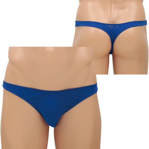 <EROX>シンプルスタイルでセクシーに魅せる大人のメンズランジェリーシリーズ!ブルーカラーのローライズTバックショーツ「コルト」。スパンデックス5%、ポリエステル95%。