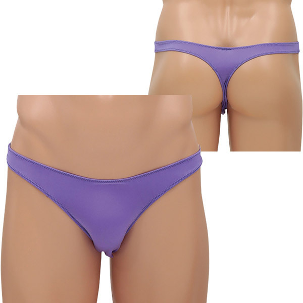 <EROX>シンプルスタイルでセクシーに魅せる大人のメンズランジェリーシリーズ!淡パープルのローライズTバックショーツ「スコーピオン」。スパンデックス5%、ポリエステル95%。