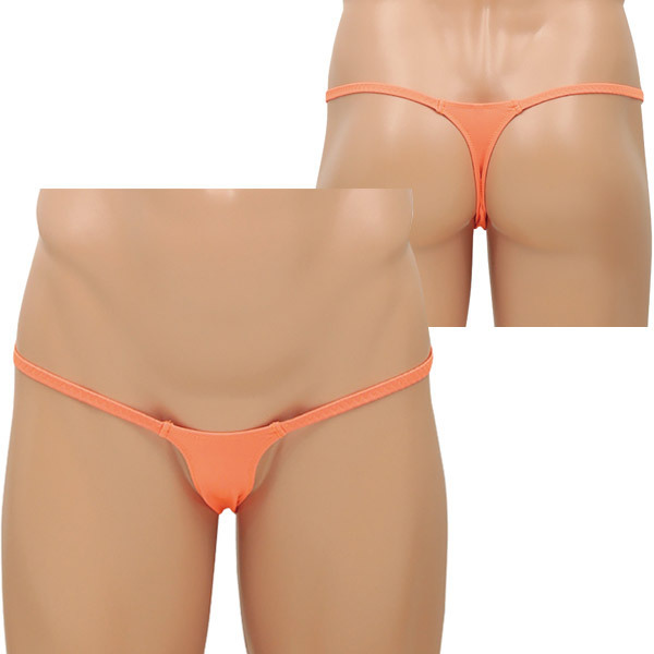 <EROX>シンプルスタイルでセクシーに魅せる大人のメンズランジェリーシリーズ!ネオンオレンジのマイクロTバックショーツ「シャープス」。スパンデックス5%、ポリエステル95%。