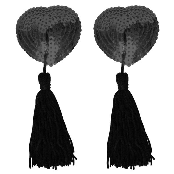 ピタッと貼るだけの簡単仕様♪バストトップ(乳首)に貼るだけで、手軽にオシャレが楽しめる下着感覚のニップルジュエリー「ニップルタッセル スパンコールハート 黒」。複数回使用できる強力粘着シールタイプのボディアクセ。きらきらと光るスパンコールで贅沢にデコレーションしたハート型ニップルと、ゆらゆら揺れるタッセルを組み合わせたゴージャスなデザインは、ショータイムやナイトパーティーにも最適です。
