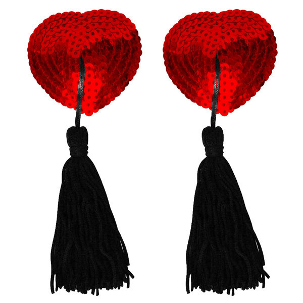 ピタッと貼るだけの簡単仕様♪バストトップ(乳首)に貼るだけで、手軽にオシャレが楽しめる下着感覚のニップルジュエリー「ニップルタッセル スパンコールハート 赤」。複数回使用できる強力粘着シールタイプのボディアクセ。きらきらと光るスパンコールで贅沢にデコレーションしたハート型ニップルと、ゆらゆら揺れるタッセルを組み合わせたゴージャスなデザインは、ショータイムやナイトパーティーにも最適です。