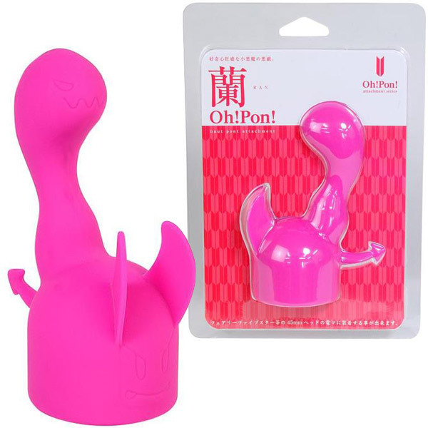 フェアリーミニ等のヘッドサイズ45mmに対応した新感覚の電マアタッチメント「Oh!Pon! (蘭・RAN) 蘭」です。高級シリコン素材100%使用で肌触りは良く、クリ責めはもちろん、乳首責めに膣責めと、全身をくまなく愛撫できるマルチな仕様のアタッチメントとなっています!キュートな表情をした小悪魔による振動が心地よく、同時に振動する2つの耳がローターの振動とは異なる快感を与えてくれます。こちらの商品は先端が細身なのでビギナーさんに特にオススメです!※使用後は外して水で丸洗いできるので衛生的です。