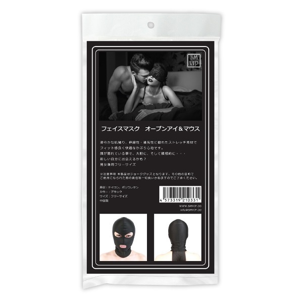 お手軽に羞恥心を煽れる♪男女兼用の「<SM VIP>フェイスマスク オープンアイ&マウス」は、目と口が開いた全頭タイプのマスクです。ナイロンやポリウレタンを素材としており、ストレッチが利いているから伸びがよく通気性抜群!さらに顔にしっかりフィット♪被るだけなので、SM初心者の方や本格的な革のフェイスマスクが苦手な方にオススメです!Mなパートナーさんに被らせ羞恥心を感じさせるも良し、敢えてSなパートナーさんに被ってもらって、狂気的な雰囲気を出しながらプレイを楽しむのも良いですね。