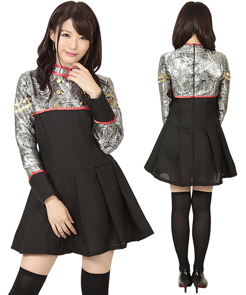 大人気の前作「アイドル道(ロード)」に第二弾が登場!王道のアイドルとは一味違うチャイナ風のアイドル衣装は、ネックから胸元にかけてギラギラと輝くシルバーを使うことで独創的なデザインに♪ダンスでヒラリと舞い上がるプリーツスカートと、そこから見えるスラリとした足に思わずドキッとしてしまいそう。アイドルステージで誰よりも注目を浴びたいなら、コチラの個性派アイドル衣装が最適です♪他にもアイドルステージ衣装をお安く買いたい方は是非当店へどうぞ!