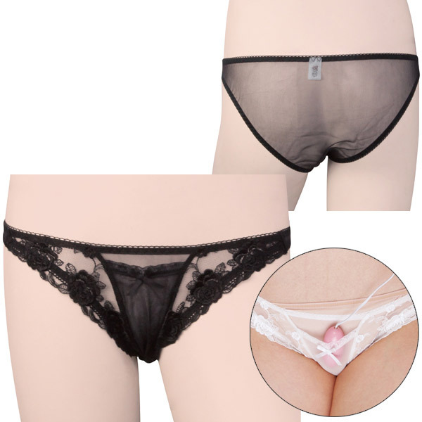 大人のオンナを一層引き立てる黒と魅惑のシースルー生地で男を虜に♪リボンとフラワーレース刺繍を施した日本製フルバックショーツ。見た目のセクシーさは勿論のこと、フロント部分に別途ミニローターを用意して仕込めば二人の夜も一層燃え上がります♪※ローターは付属しておりません。
